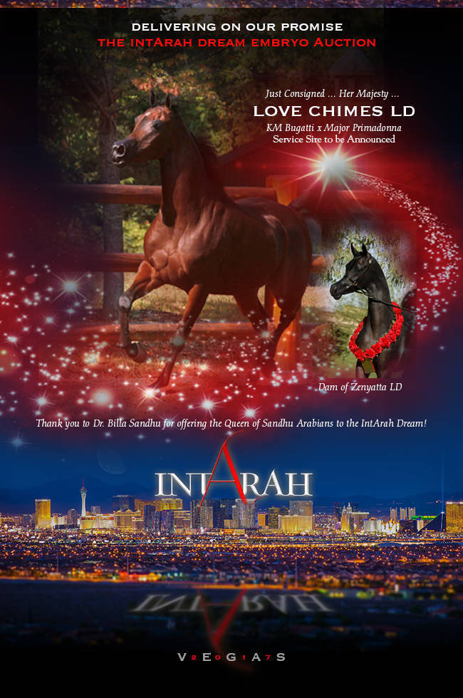 Dam of International super star Zenyatta LD, Love Chimes LD now consigned to the 2017 IntArah Dream Embryo Auction. . .